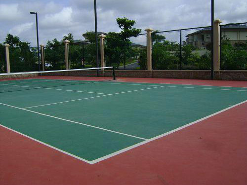 球場地坪漆性能特點,可根據需求加入微型橡膠層,以增加地面的彈性,超平平整度、平均彈性、防滑性能好、顏色穩定,不褪色、不起泡、不開裂、不生霉。網球場、籃球場、羽毛球場、排球場、等體育運動場地面。底料涂層:用強化瀝青填充劑加水混合攪勻后滿刮場地一遍;基料涂層:用強化瀝青填充劑加石英砂和水混合攪勻后滿刮場地二遍。